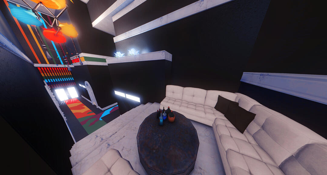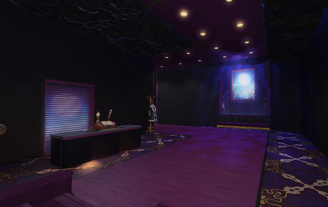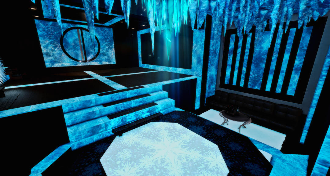 Located: Plot 46, 11th ward. Lavender Beds (Medium), Zalera | Crystal.[NOT ACTIVE]This is one of my favorite builds, and one of the most recent. This design-concept really allowed me to step out of my comfort zone and work at creating a modern Tron dancehall. As a designer, I really struggled with pacing the item count with modern builds because I love the little details within a build. So, the simplicity of this request allowed me to take a medium build and carve it such that the modern aspect is there, as well as the small details that I love: like the Dualism logo I added on the main dance floor and the detailed DJ booth with a heart silhouette on the main base.I am so privileged to be able to work with the materials I did and as a result, fall in love with this design every time I go in and look at it.