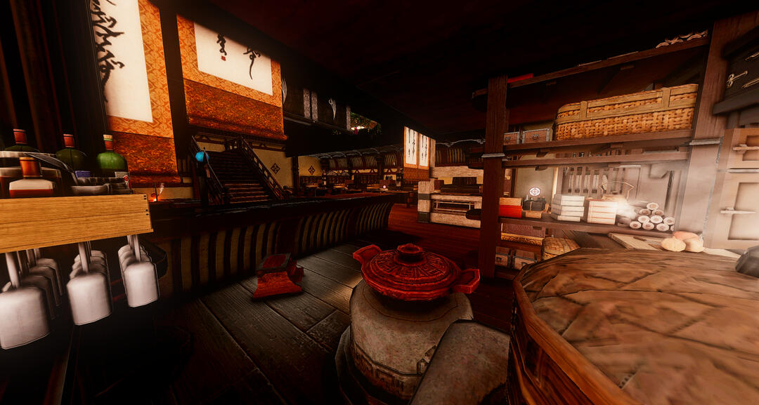 Located: Plot 21, 22nd Ward, The Lavender Beds (Medium). Goblin | Crystal.[NOT ACTIVE]This build is personal to me in that it is something that has been in the works for quite some time! If you do use gshade, make sure it has a red hint to it so you can see the full capabilities of this build. The general concept is a Hingan-style café with applicable lounging areas. I wanted to keep the space open-concept, but intimate in the areas that would be in frequently use -- hence the false ceilings and raised floors.The kitchen in this build is my first attempt -- of many to come. Because I love this kitchen. It is hard to walk into the space and not feel the pull towards those steamers: to open and try a fresh dumpling or smell the spices of the various containers. As such, it is my favorite part of this design. I also enjoyed the cozy space downstairs created with the couches. Sitting in these sofas creates a feeling of privacy without the annoying, stuffy atmosphere associated with tighter spaces.