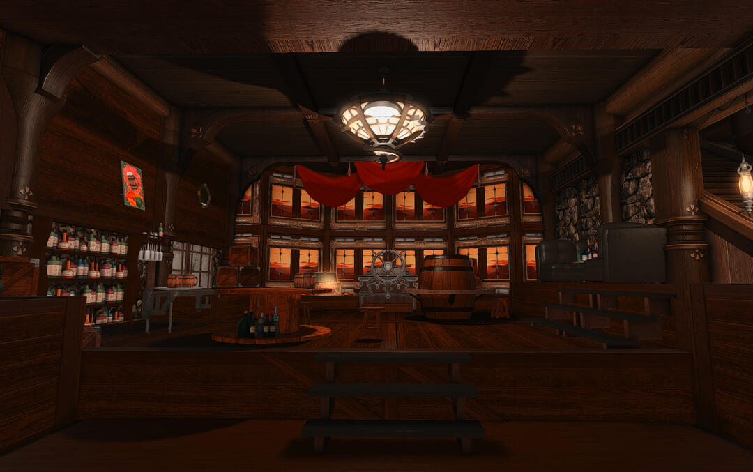 Located: Plot 53, 1st Ward, The Lavender Beds (Small). Zalera | Crystal.[NOT ACTIVE]The idea behind this specific commission was an intimate build that functioned as a small café and bar with an additional area for dancing and in-house DJ. I had a lot of fun with this build as I got to go out of my comfort zone and try both services!I tend to like to carve my designs, but I needed to make use of most of the space and sacrificed some details to do so! But then I focused on more statement pieces -- like the back wall downstairs and the fireplace upstairs!My favorite piece of this build was inspired by a friend: the pirate's crow's nest located right as you walk downstairs.